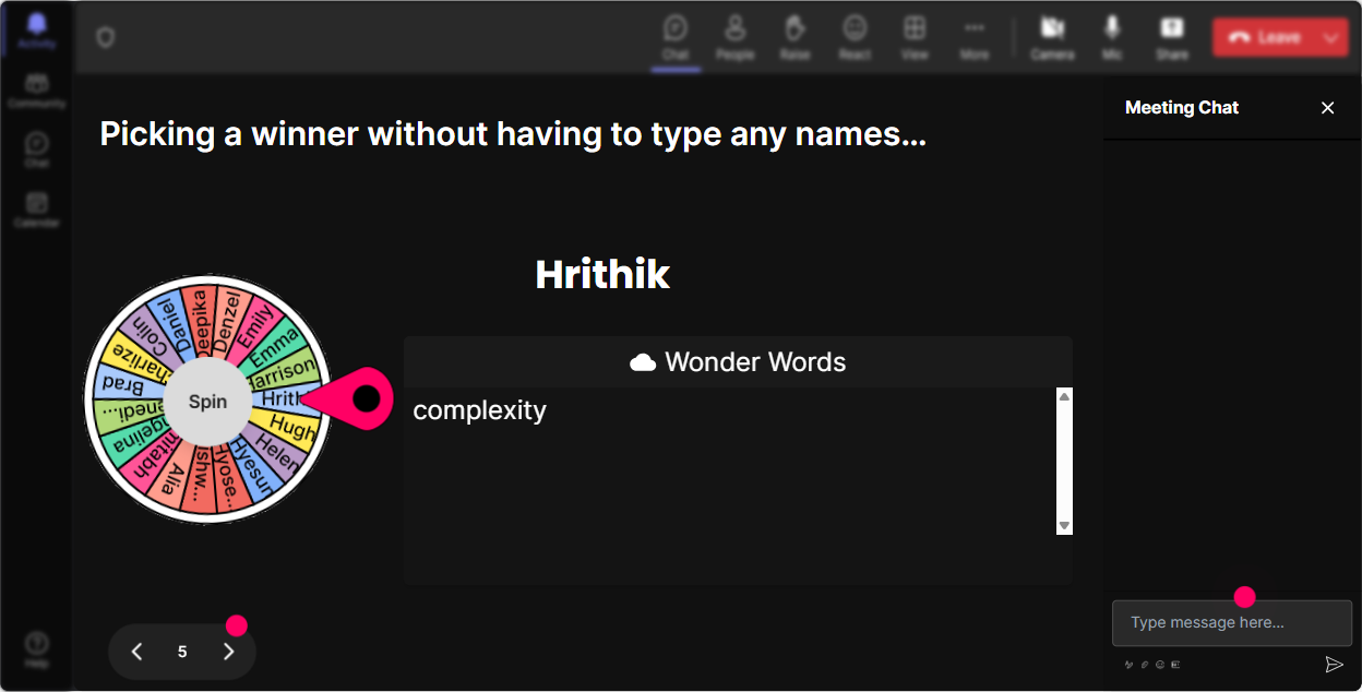 Feeling lucky? Use the Spinner Wheel to choose a volunteer to elaborate on their answer or share an experience. It adds an element of surprise and ensures everyone gets a shot at participation.