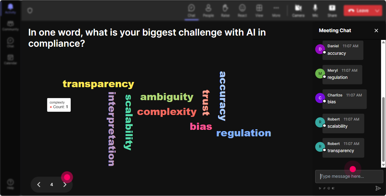 Ask attendees how they feel about Generative AI. Responses like "excited" or "intimidated" will create an insightful word cloud.