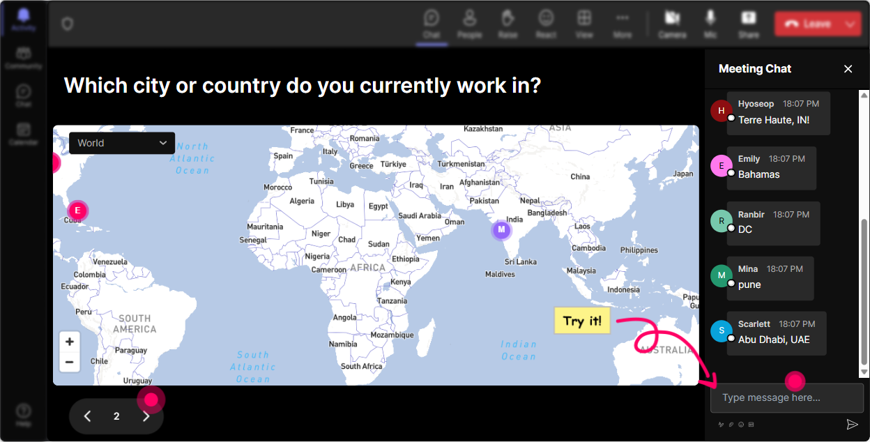 Get things started by using Magic Maps to ask, 'Where in the world are you joining us from today?' Not only does this break the ice, it visualizes where your audience is located and sets a fun, engaging tone right from the start.