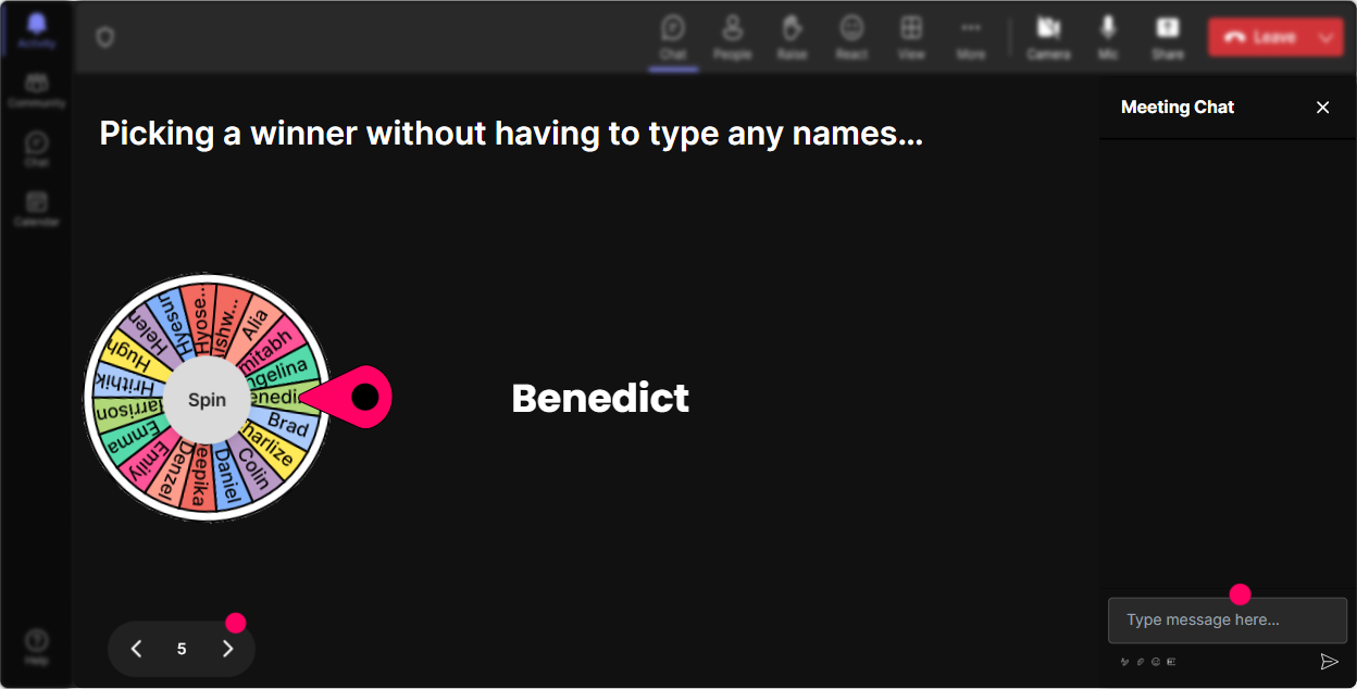 Use the Spinner Wheel to randomly select a volunteer who answers a probing question about their typical underwriting challenges related to KYC. It adds an element of surprise and keeps everyone looking forward to their turn.
