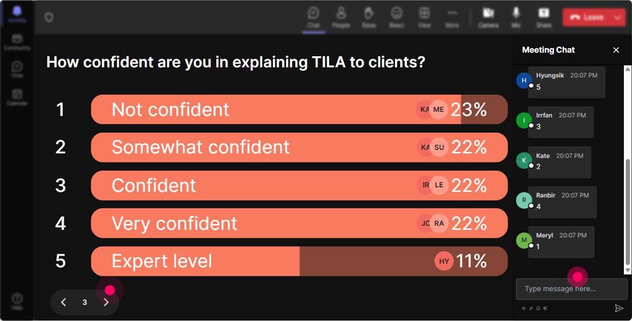 Use Power Polls to determine what aspect of TILA your audience finds most confusing or intriguing. This way, you can spend more time on areas that matter most to them, keeping the session relevant and engaging.