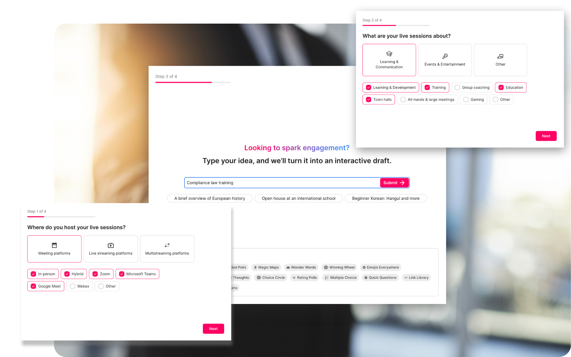 Run polls, word clouds, Q&As, interactive maps and more audience engagement features directly inside your existing PowerPoint decks