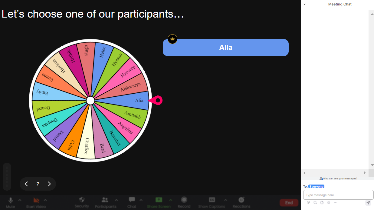 Spin a wheel of names or words and let the spinner wheel pick a winner.