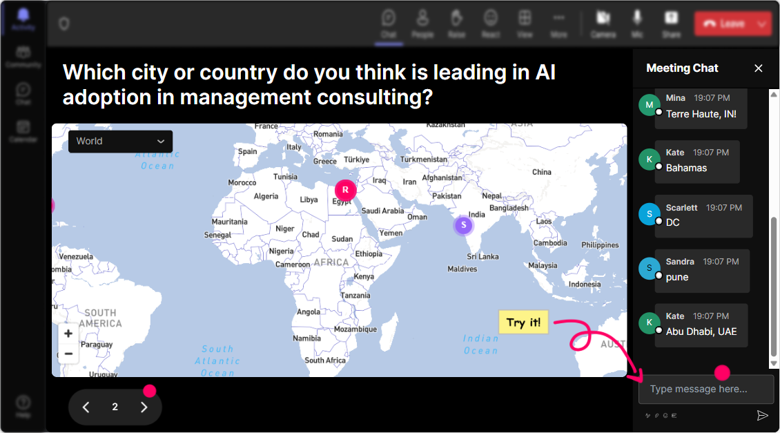 Start your session with a bang and get everyone talking by inviting them to share their location with StreamAlive's Magic Maps. Break the ice and let folks see the diverse backgrounds right on a live map. It's like a world tour right from your session!
