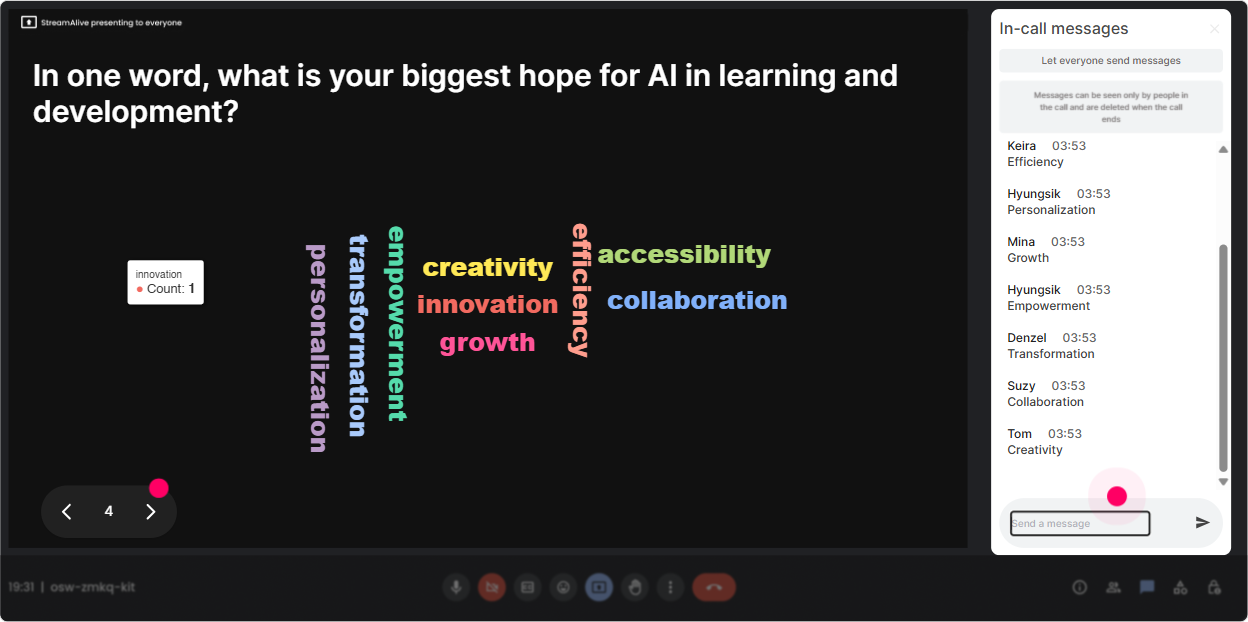 This is the part L&D Leaders love-because it helps you improve the next session and show evidence that people werent just logged in they were active. What you can do with StreamAlive Analytics after your AI Agents ILT: - See minute-by-minute engagement: spot where attention dipped (maybe that section needs a story or a quick activity). - Review chat replay + interaction results: pull real participant language to refine your examples. - Identify top engaged participants: great for follow-ups, champions, pilot groups, or internal communities of practice. - Share results easily via email reports: perfect if you need to show stakeholders Heres what the audience cared about most. Trainer tip: Use the interaction data to upgrade your next run: Last time, governance was the #1 concern-so I added a 10-minute practical checklist. Thats how you get better every delivery.