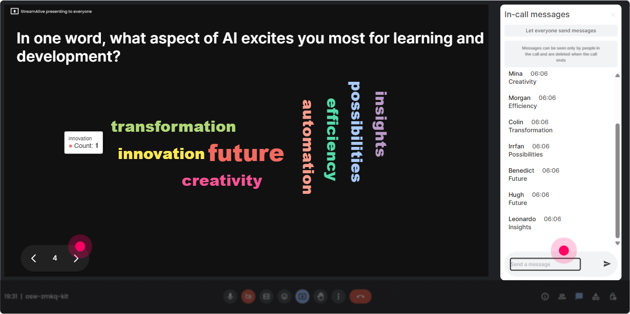Talking Tiles are perfect when you want longer responses-real scenarios, real worries, real use cases. And because responses show up visually, people actually read each others thoughts. **Prompts that work great in AI Fluency training for L&D Leaders:** - **Where could AI save you time in your L&D workflow-this month?** - **Whats one learning experience youd redesign if you had an AI assistant?** - **Whats your biggest concern about AI in learning (quality, bias, privacy, job impact, something else)?** **How to facilitate it live:** - Let tiles build for 3060 seconds. - Then spotlight 23 themes you see and transition into your next module (policy, governance, use-case design, etc.). Its basically crowdsourced agenda-setting-without you needing to guess what matters to them.