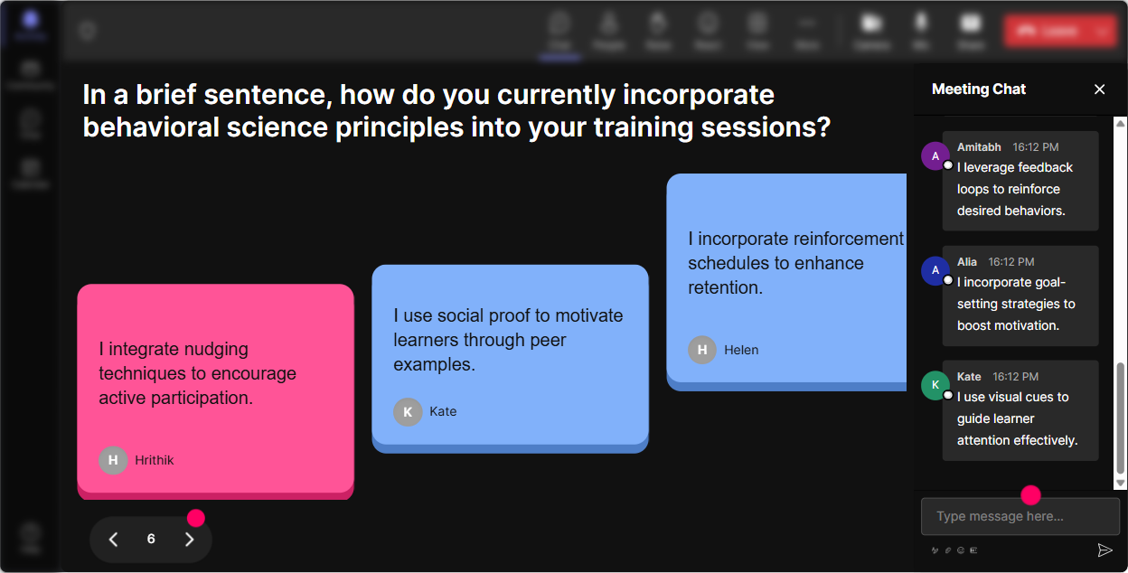 Rating Polls are perfect for behavioral science because youre constantly checking readiness, confidence, and beliefs-aka the stuff that drives behavior. Ways to use it during the session: - **Kickoff baseline:** On a scale of 110, how confident are you in using behavioral science in your training design? - **After introducing a model (like COM-B or EAST):** Rate this model for how practical it feels for your next workshop (110). - **Mid-session reality check:** How likely are you to test ONE behavior-change tweak in the next 7 days? Trainer tip: When you see the scores live, narrate what youre going to do next: Okay Im seeing a lot of 46. Im going to slow down and give you a concrete example before we move on. That right there builds trust-and attention.
