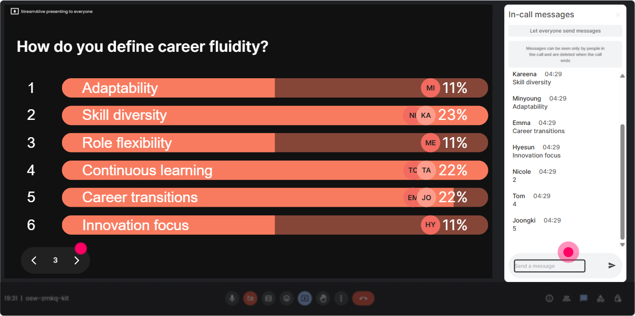 Youve been asked to run an instructor-led session on Career Fluidity for L&D Leaders-and you want it to feel alive, not like another slide marathon. The good news: a few simple, chat-driven interactions can pull everyone in fast. Here are practical ideas using StreamAlive to keep participation high from minute one.