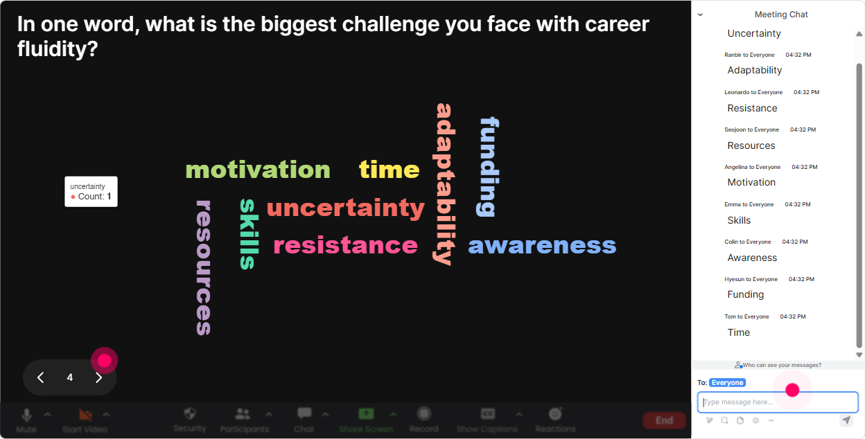 3) Wonder Words (Word Cloud): Turn feelings about Career Fluidity into a shared room mood