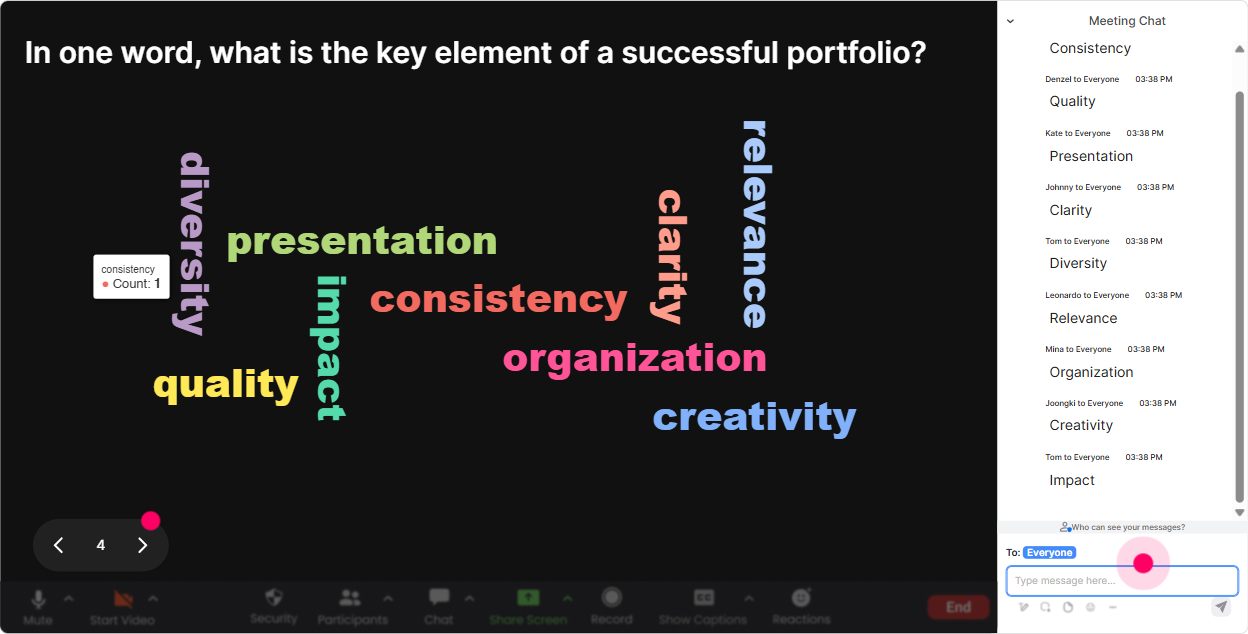 Talking Tiles is perfect when you want more than one-word answers. People can type short stories, examples, or ideas-and you get this energetic messages falling in visual that keeps attention up. Try these prompts during your Career Portfolios ILT: - Proof prompt: Share one project youve done that youre proud of-and what impact it had. - Outcomes prompt: Write one measurable result youve delivered (even if it feels small). - Portfolio section builder: If your portfolio had 3 sections, what would they be? (e.g., Case Studies, Training Delivery, Program Design, Client Wins) Trainer tip: Pick 23 tiles live and coach them into portfolio-ready language. Example: turn helped onboarding into Redesigned onboarding, reduced ramp time by X% (or improved satisfaction). People love seeing the upgrade happen in real time.