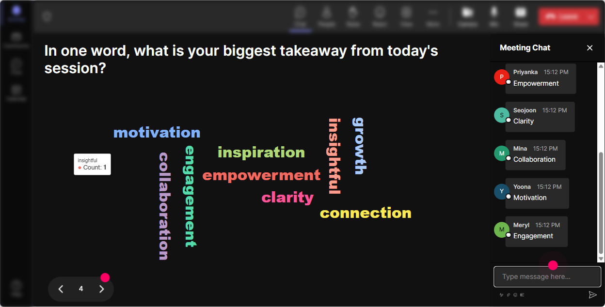 This is where you get the room thinking like a governance council-without needing everyone to unmute. Talking Tiles is perfect for longer, more thoughtful responses. Try prompts like: - In your role, whats one AI decision you should NEVER approve alone? - Whats one governance rule youd implement this quarter to reduce AI risk? - Finish this sentence: AI governance fails when - Whats the most common shadow AI behavior youre seeing (or expecting)? Trainer move: After tiles stack up, group them live: These 10 comments are really about accountability. These ones are about data access. These are about vendor risk. Youre modeling cross-functional synthesis-exactly what good governance requires.