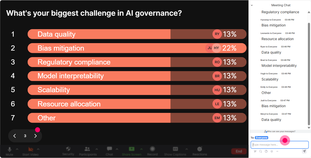 Make your instructor-led Cross-Functional AI Governance training more fun with polls, word clouds, spinner wheels and more