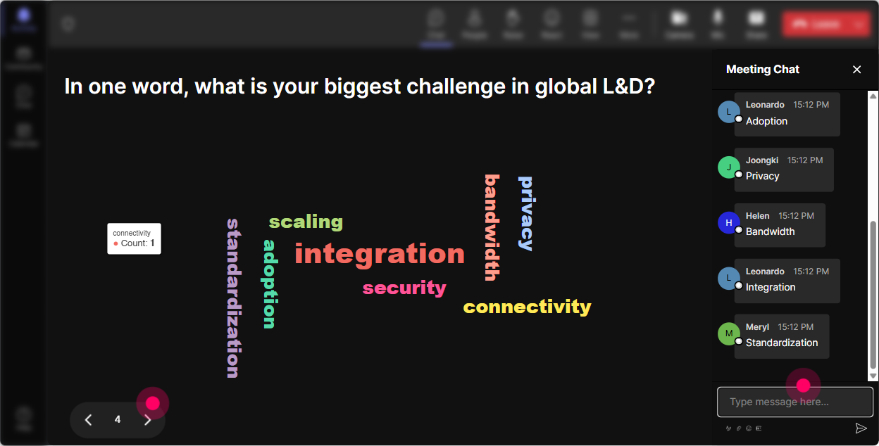 Talking Tiles is great when answers need to be longer than a couple of words-like examples, mini-stories, or practical ideas. It makes the chat feel like a shared workspace instead of a scrolling sidebar. Perfect prompts for this topic: - Whats one process in your org that became easier because of digital tools? - Where does global work break down most-handoffs, decisions, meetings, or priorities? Tell me what you see. - Share one thing your organization does that helps teams collaborate across countries. Trainer tip: Use the tiles to theme responses live. Say: Im seeing a pattern-tools are fine, but decision rights are messy. Now youre facilitating, not just presenting.