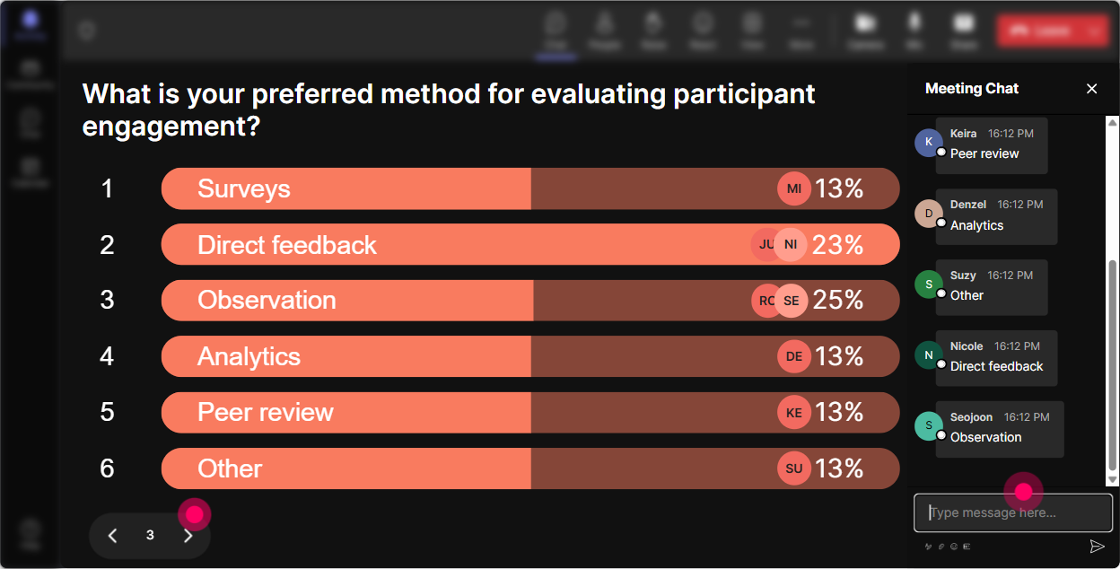 After the session, you dont want to rely on vibes. StreamAlive analytics show you what actually happened-minute by minute. How trainers can use it for Experience Design: - Spot engagement peaks: See which moments triggered the most chat and interaction, then replicate that pattern in future sessions. - Find the drop zones: If engagement dips during a specific segment (hello, long explanation), youll know exactly where to redesign. - Identify your most engaged participants: Great for follow-ups, champions, or even peer mentors in future cohorts. - Interaction reports + email sharing: Send yourself (or your L&D team) the results so you can debrief what worked, what didnt, and what to tweak. Bottom line: Analytics turns Experience Design from a creative guess into an improvable system-session after session.