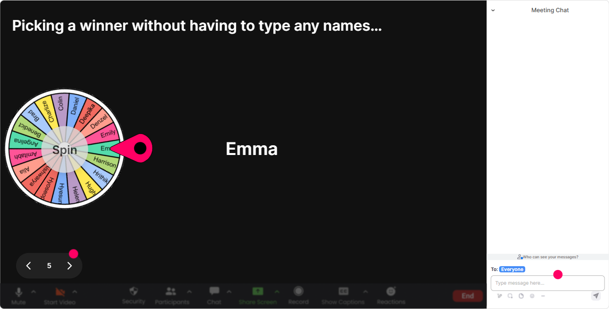 6) Winner Wheel (Spinner Wheel): Get participation without putting people on the spot