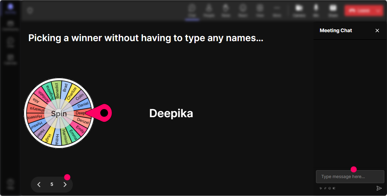 You know that moment: you ask a question and everyone suddenly becomes a statue. Spinner Wheel fixes that by making participation feel fun and fair. Ways to use it: - Drop one trend affecting your learners in the chat. Im going to spin the wheel to choose someone to unpack theirs for 30 seconds. - Type scenario if you want to share your 2030 scenario headline-wheel decides who gets the mic. - Everyone share one stakeholder you need to convince (e.g., HRBP, Sales leader, COO). Ill spin and well workshop one together. Trainer move: - No pressure-this isnt gotcha. Were just borrowing your example so the whole group can learn from it. You can even spin from people who commented during a specific activity-so youre rewarding participation.