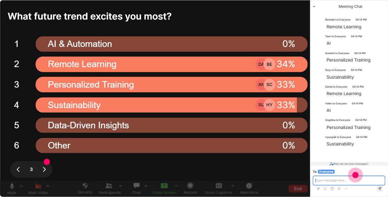 Instead of guessing what they need, let them tell you. **Power Polls** makes it super easy-people vote in chat, results show live, and you can steer the session based on what wins. Poll ideas for Training Agencies: - What do you want more of today? 1) Trend spotting & scanning signals 2) Scenario planning 3) Turning insights into training programs 4) Selling Foresight to clients - Which horizon do your clients struggle with most? 1) Next 6 months 2) 12 years 3) 35 years 4) 10+ years Trainer move: Looks like turning insights into programs is the winner. Great-then Ill show you how to convert a trend into learning objectives and activities.