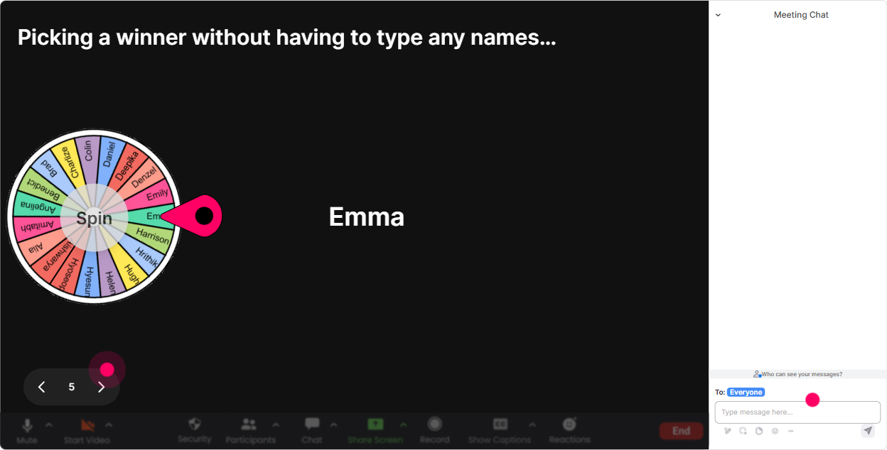 You know the moment: you ask a question and the same two people answer. Winner Wheel fixes that in a fun, fair way-especially for roleplays or quick shares. Ways to use it: - After a chat activity: Everyone drop one objection you hear most. Great-now Im spinning the wheel to pick someone to unmute and share how they usually respond. - For mini roleplays: We need a volunteer to play the skeptic-wheel decides! - For rewards: Ill spin from everyone who commented in the last activity-winner gets a resource bundle / template / shoutout. Trainer tip: Set the tone: If you get picked, no pressure to be perfect-just be real. That keeps it playful, not stressful.