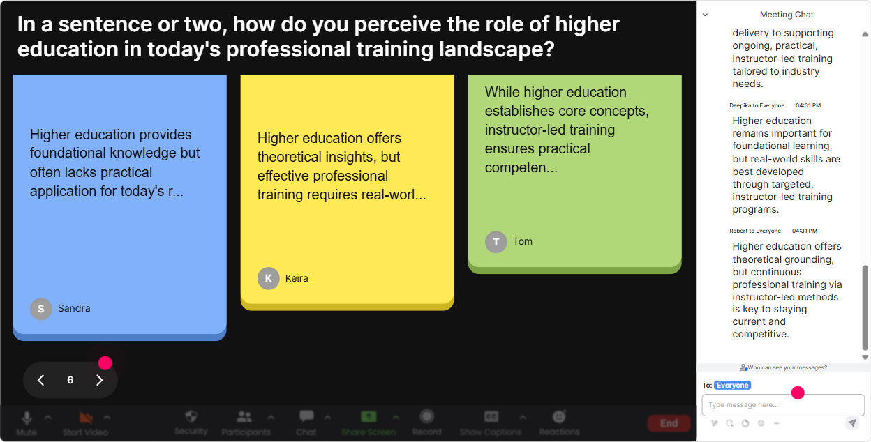 When you want more than one-word answers-like stories, examples, or real challenges-Talking Tiles is gold. People type, and their messages become the content you teach from. Try prompts like: - Whats one skeptical comment youve heard recently about college or credentials? Paste it exactly as you heard it. - Where does Higher-Ed Skepticism show up in your job (sales calls, learner onboarding, leadership meetings, program design)? - Whats a moment you felt stuck responding to skepticism? Trainer tip: Pick 23 tiles and respond live: This one is common-heres a clean way to reframe it. Suddenly your training feels tailored, not generic.