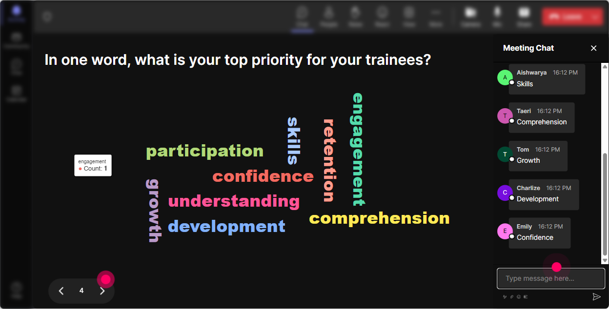 Talking Tiles are great when you want longer, real responses-and you want the group to see each others thinking in a fun, dynamic way. Prompts that work really well for this topic: - In one or two sentences: what would hyper-personalization change in your job as a corporate trainer? - Describe one learner persona you regularly train (role, skill level, motivation). - Whats one moment in your training where learners typically split-some are bored, others are lost? Then you can use the tiles as your teaching material: - Im seeing a lot of new managers + low confidence-lets build a personalized pathway example for that group. - Several of you said mixed skill levels-perfect, thats exactly where personalization pays off fastest. This is how you stop teaching concepts and start teaching their reality.