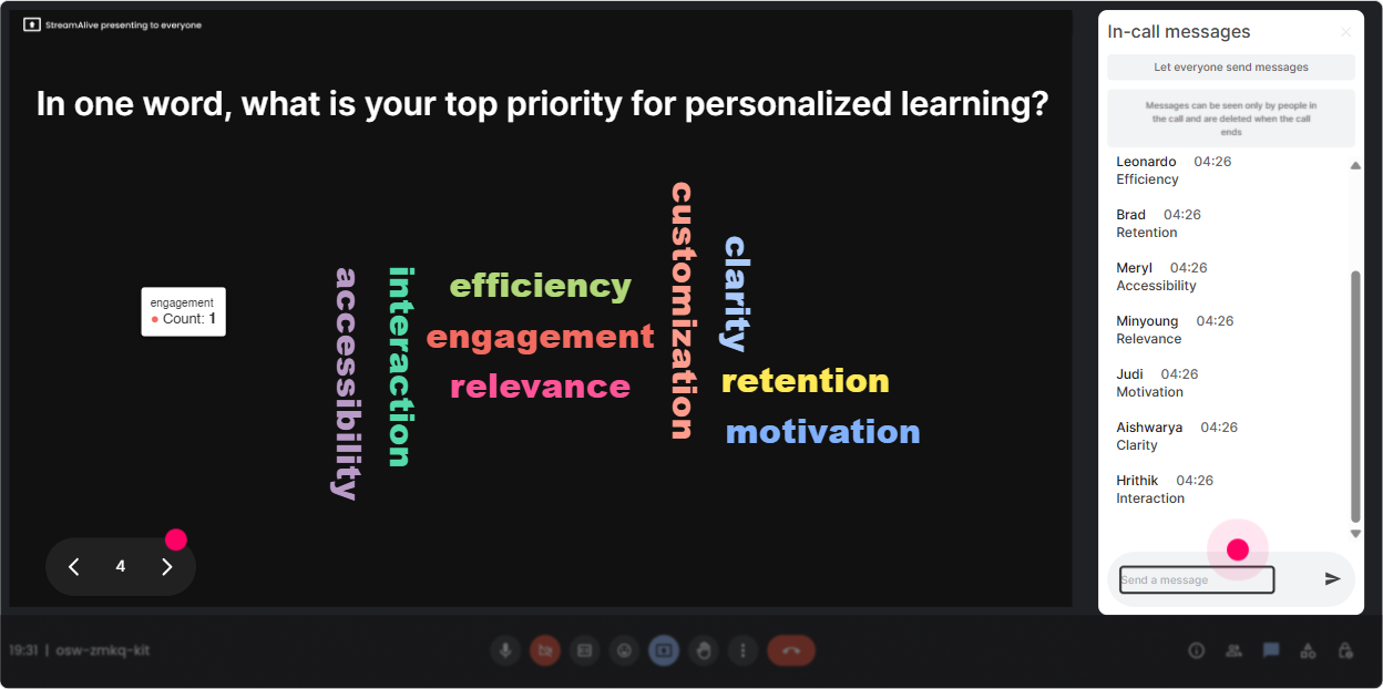 If youre an L&D leader or trainer, you know the pressure: Was it effective? StreamAlive Analytics gives you a clean view of what actually happened-minute by minute. What to look for after your Hyper-Personalized Learning session: - Engagement spikes: Which segment made chat activity jump? (Keep that, reuse that.) - Drop-off moments: Where did it go quiet? (Thats your cue to tighten that section or add interaction.) - Top fans / most engaged participants: These are your champions-great people to involve in pilots or follow-up discussions. - Interaction reports: See which polls, word clouds, and activities worked best. Trainer tip: Screenshot or export the highlights and share them with stakeholders. Its an easy way to show your session wasnt just delivered-it was actually experienced. And the more you refine based on analytics, the closer you get to that up to 9x engagement feel in every session.