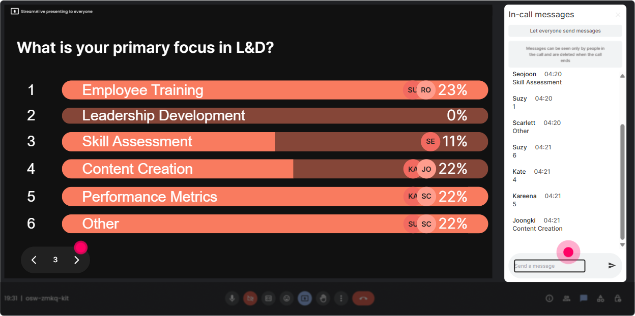 Power Polls are perfect when you have limited time (always) and you want the room to feel like the session is tailored to them (because it is). You can pre-load options or even let StreamAlive pick answers from chat. How to use it in Impact Visualization training: - Direction-setting poll: What do you want most from today? Options example: 1) Building an impact story that leaders buy 2) Picking the right metrics (without drowning in data) 3) Mapping learning to business outcomes 4) Presenting impact visually (dashboards, one-pagers) - Decision poll: When leaders ask for ROI, what do you usually do? Options example: 1) Share completion and satisfaction 2) Share behavior/application evidence 3) Try to estimate ROI 4) Avoid the question (no shame) Trainer tip: Show results live and narrate them like a host: Alright, mapping to business outcomes is winning-so Ill spend extra time there and keep the dashboard part tighter. Instant engagement boost.