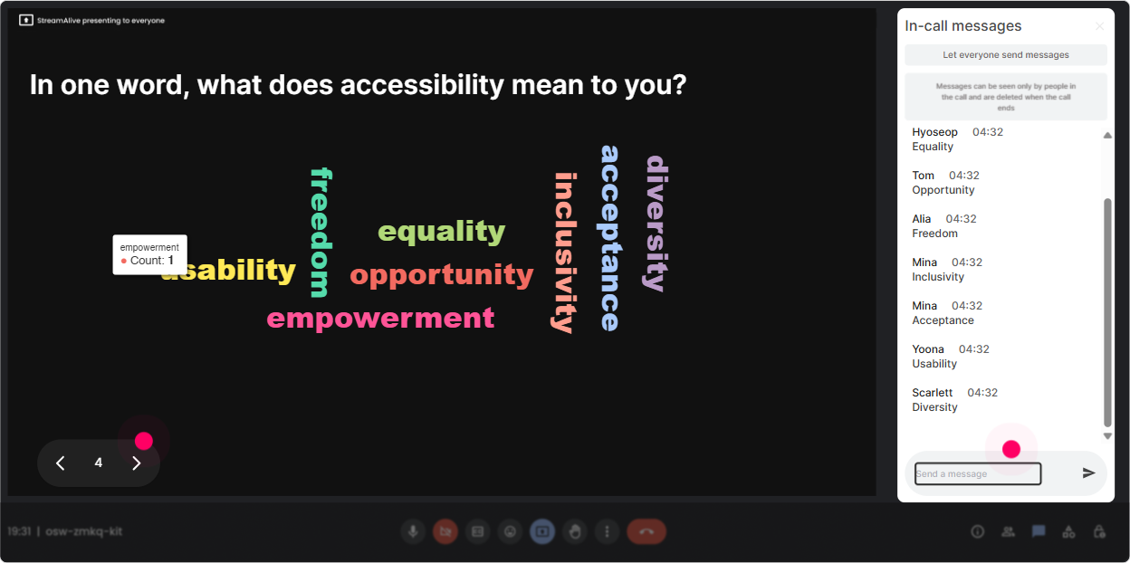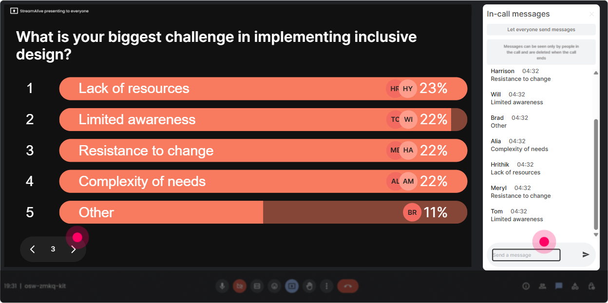 L&D Leaders love relevance. If you let them vote on what matters most, youll get buy-in instantly-and youll stop guessing what the room needs. Poll ideas for this training: - Which area do you want to focus on today? 1) Accessible slide design 2) Inclusive facilitation tactics 3) Activities that work for neurodiversity 4) Evaluating accessibility (checklists + testing) - Whats your biggest constraint? 1) Time 2) Tools/tech 3) Stakeholder buy-in 4) Skills/knowledge How to use it: - Run it early and promise: Well spend extra time on the top vote-getter. - Run it mid-session as a pivot: Do you want examples or a hands-on mini audit next? Bonus: If you want unexpected answers (and to discover what you didnt think of), use Open-Ended Polls and let StreamAlive pick up the options directly from chat.