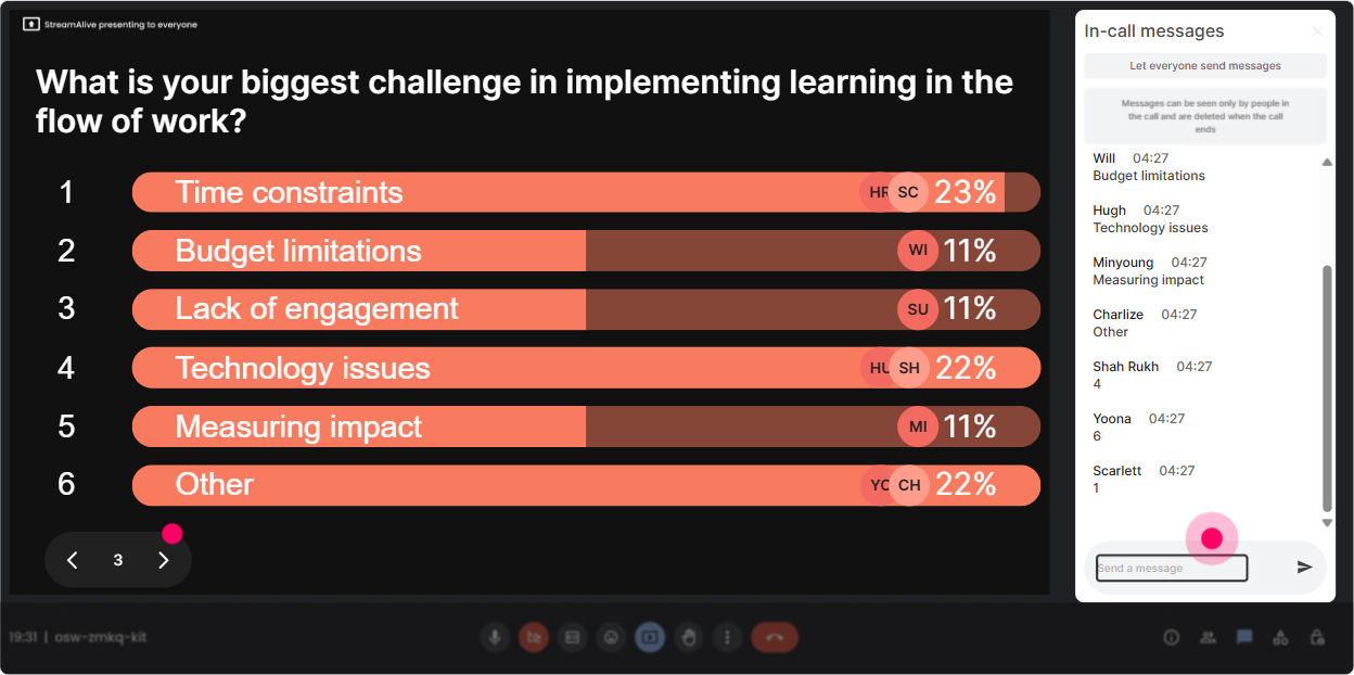 L&D Leaders love relevance. Power Polls help you stop guessing what they care about and let them vote on what to spend time on. Plus, seeing the live results creates instant buy-in: We picked this together. Poll ideas for your run-of-show: - What do you want most from today? 1) Practical examples 2) Strategy + operating model 3) Tech/tools ecosystem 4) Measurement + proof of impact - Where should learning live for your org? 1) LMS 2) In Teams/Slack 3) Inside the workflow tool (CRM/ServiceNow/etc.) 4) In a searchable knowledge base Trainer move: take the top vote and promise an outcome: Perfect-measurement won. By the end, youll have 3 metrics you can actually defend in front of business leaders.
