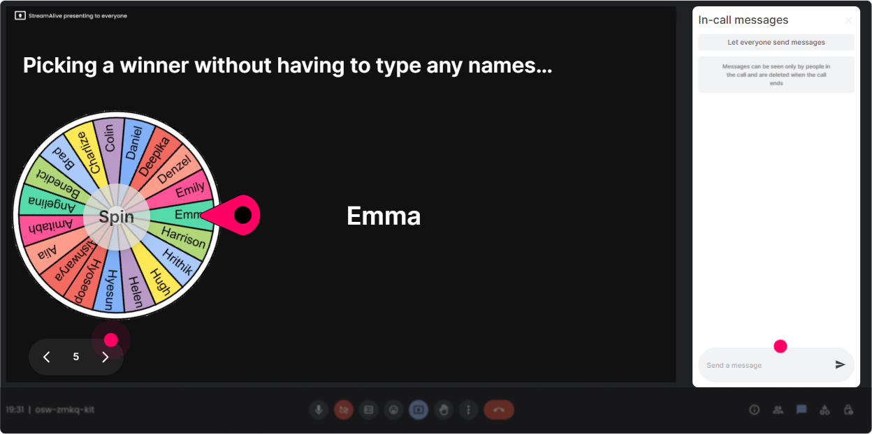 6) Use Winner Wheel to get participation (without calling on people randomly)