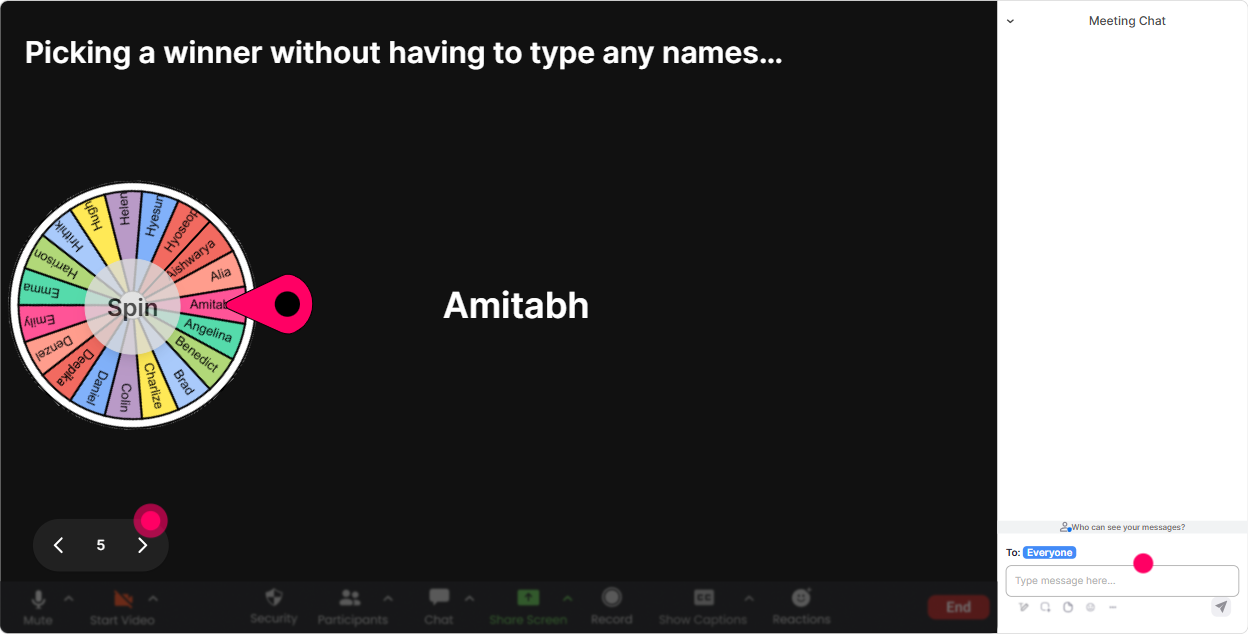 6) Winner Wheel: Get participation without awkward anyone want to share? silence