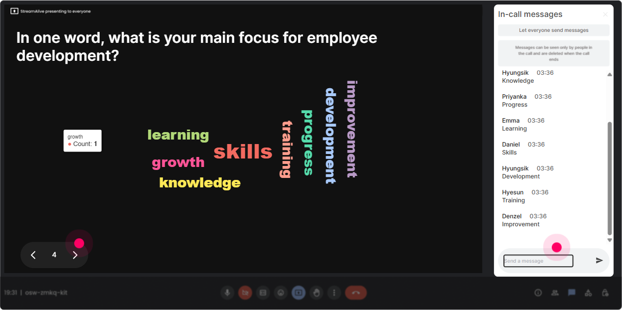 Sometimes you need more than one-word answers-especially with senior L&D folks who want nuance. Talking Tiles lets longer responses fall onto the screen like tiles, so the group can literally see the conversation building. Great prompts for this session: - Where is lifelong employability already showing up in your org-formally or informally? - Whats one policy or practice that accidentally discourages internal mobility? - Finish this: If we want employees to stay employable, managers must Why it works: People dont feel like theyre writing into a void. Their thought appears on screen, others react, and suddenly youve got peer learning happening-without forcing anyone to unmute.