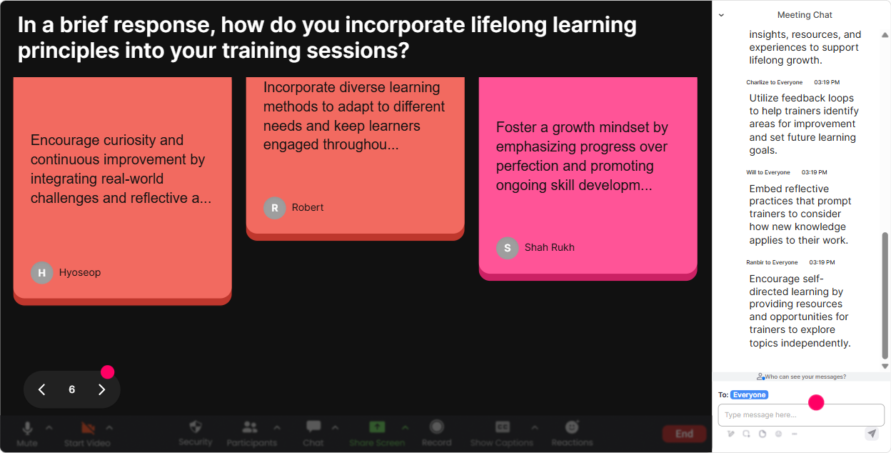 Rating Polls are perfect when you need a fast temperature check without slowing the session down. People just drop a number in chat, you instantly see the distribution, and you can adjust on the fly. Try these in a Lifelong Learning session: - Confidence check: On a scale of 110, how confident are you at building a personal learning habit? - Relevance check: How important is Lifelong Learning for trainers in your organization? (1 = not really, 10 = essential) - Momentum check mid-way: Rate your energy right now (110). If you see a dip, you know its time for an activity, break, or story. Trainer move: say what youll do with the results. Im seeing lots of 46s, so Im going to slow down and give you a simple starting framework. People love when their input changes the session in real time.
