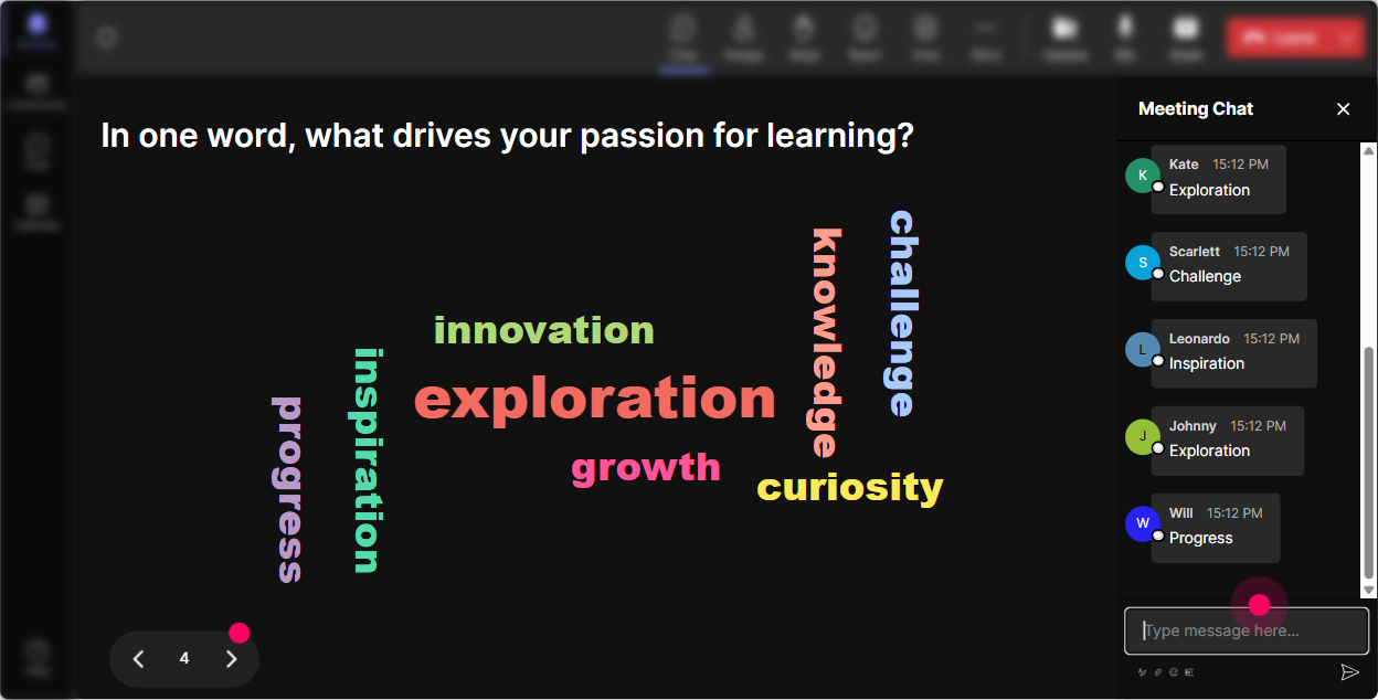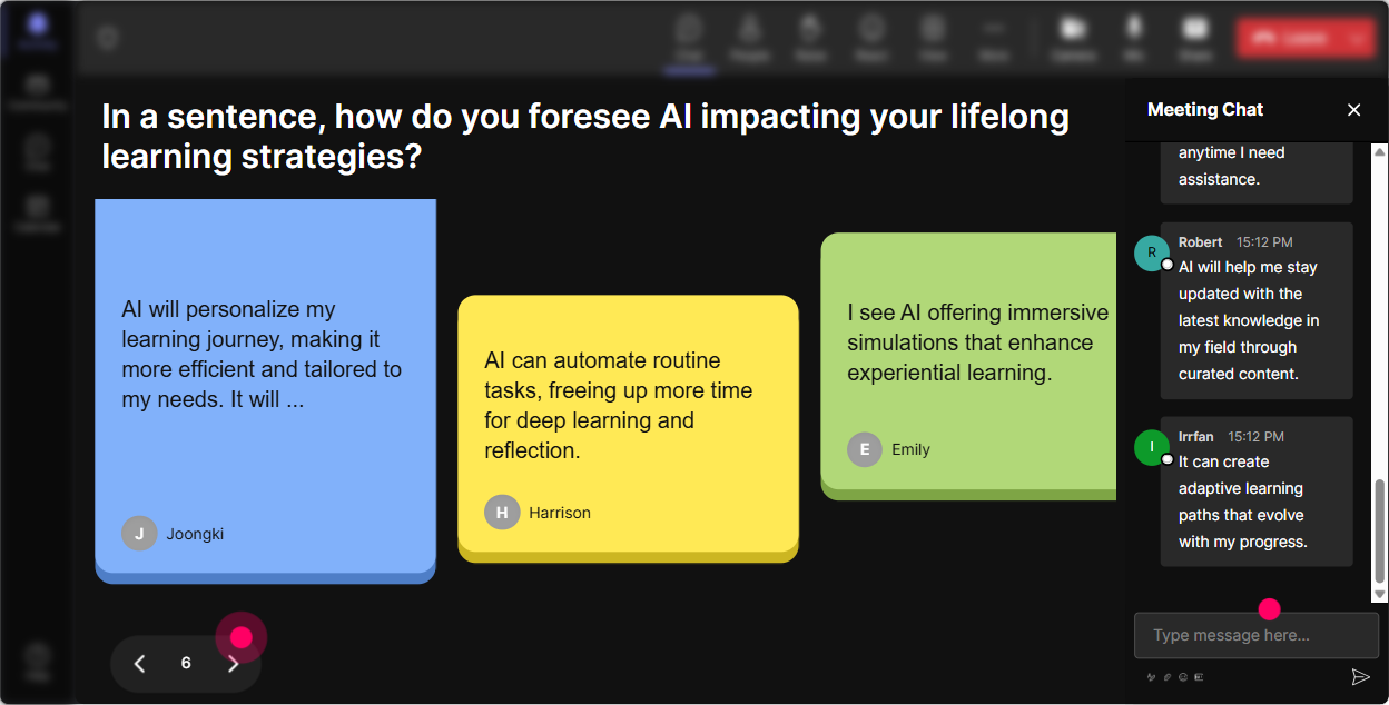 When you want more than one-word answers-use Talking Tiles. People type in chat, and their responses drop onto the screen like tiles. It feels playful, and its awesome for stories, examples, and idea-sharing. Try questions like: - What impact would a stronger lifelong learning culture have on your role as an L&D leader? - Describe one learning habit you wish more leaders practiced. - Whats one thing youd stop doing in L&D to make room for continuous learning? Trainer tip: pick 34 tiles to read out and riff on. Youll get that were building this together vibe instead of you doing all the talking.