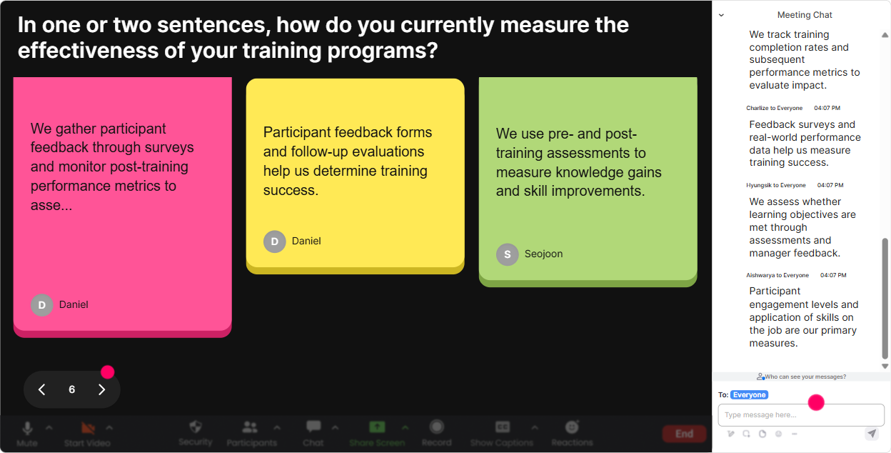 Analytics is the behind-the-scenes superpower-because it shows you what actually worked. Not what you *think* worked. How to use it in Performance Consulting ILT: - Spot energy peaks: Look at minute-by-minute engagement to see where the room lit up (often during role-plays, objection handling, or real case examples). Do more of that next time. - Fix the boring parts: If engagement drops during a specific section (say, definitions or theory), youll know exactly where to add an interaction next delivery (poll, word cloud, quick quiz). - Identify your most engaged attendees: Great for Training Agencies running certification cohorts-your Fantastic Fans are often your champions, future facilitators, or best peer coaches. - Share results internally: Export or email interaction reports to your team. Its super useful when youre improving a program or reporting back to stakeholders. Trainer tip: Use analytics as your continuous improvement loop: deliver review tweak the run of show deliver again. Thats how engagement compounds and you get closer to that up to 9x participation feel.