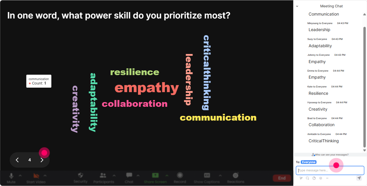 Word Clouds are amazing for emotions, assumptions, and quick crowd-sourcing. You ask a short question, everyone answers in 12 words, and the group immediately sees whats most common. How to use it in Power Skills Focus training: - Set the tone: Power Skills training feels ____ right now. (exciting, overwhelming, overdue, unclear, etc.) - Diagnose the real need: One power skill your clients ask for most? (communication, leadership, conflict, feedback) - Reflect on outcomes: One word you want learners to say after your session? (confident, clear, capable, motivated) Trainer tip: When a big word appears (like feedback or confidence), point at it and go: Alright, this is the headline. Lets make sure we nail this today. That moment alone boosts buy-in.