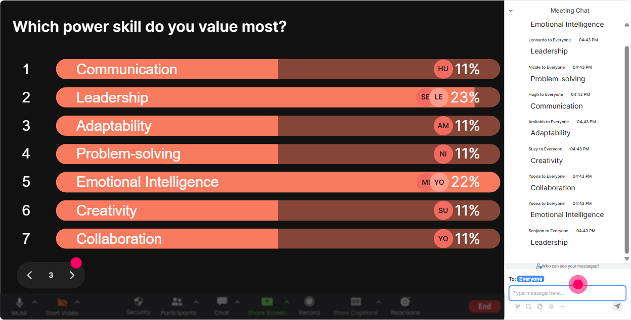 Power Polls are for decision moments-where you want the group to pick what matters most. Its also a slick way to keep attention because people want to see what wins. How to use it in Power Skills Focus training: - Pick the focus area: What should we prioritize today? 1) Coaching conversations 2) Giving feedback 3) Handling conflict 4) Executive presence - Choose practice format: How do you want to practice this? 1) Role-play 2) Case study 3) Group brainstorm 4) Solo reflection + share - Understand the room: What kind of learners do you train most? 1) Frontline 2) Managers 3) Senior leaders 4) Mixed groups Trainer tip: Run a poll right before a big section. Even if you planned to cover everything, you can say, Well cover all, but well start with what you voted for. It instantly boosts engagement.