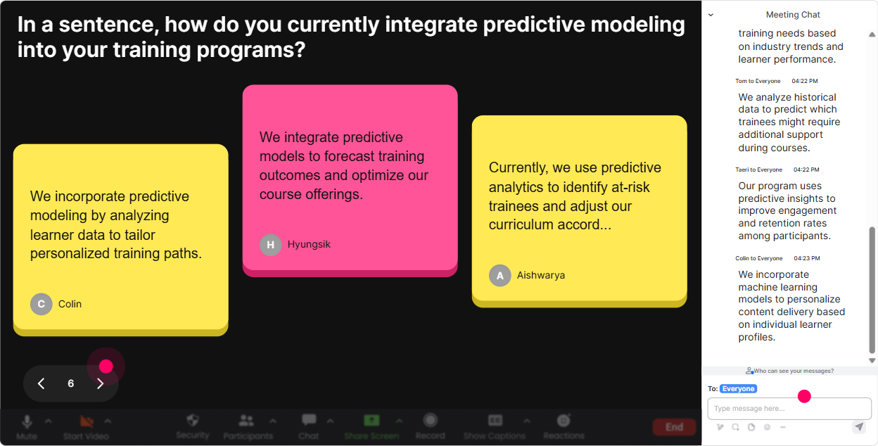 This is where you stop teaching generic predictive modelling and start teaching *their* predictive modelling. Talking Tiles is perfect for longer responses-real use cases, constraints, data issues. **How to use it in Predictive Modelling ILT** Ask a question that invites a short story. Their responses drop onto the screen like tiles, so people actually read each others answers (and feel seen). **Prompts you can use:** - What would you love to predict at work if you had the data? - Whats your biggest headache with data quality right now? - Where do models fail in your world-what breaks first? - Whats one decision your stakeholders want help with (pricing, staffing, churn, demand)? **Trainer move that boosts engagement:** Choose 23 tiles and say: Lets build todays examples around these. You instantly increase relevance, and relevance is engagement.