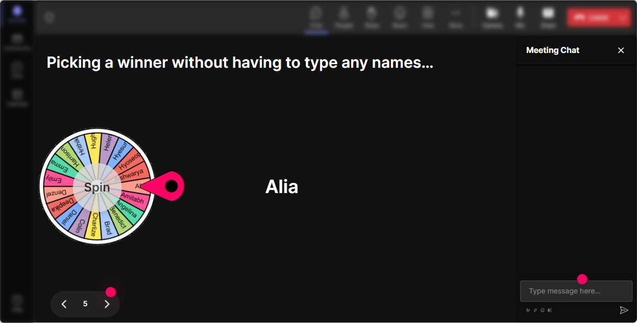 You know that moment when you ask, Who wants to share? and suddenly everyone becomes a statue? Yeah. Use **Winner Wheel** to make sharing playful and fair. You can spin from people who commented during a specific interaction-so it rewards participation too. How to use it in Rapid Teaming training: - After a poll: Im going to spin the wheel-winner gives us a 20-second reason why they picked that option. - After Talking Tiles: Wheel time-tell us more about your tile example. - During role-play: Lets spin for who plays the project lead in this scenario. Trainer tip: Set expectations kindly: If it lands on you, you can pass-but Im hoping youll help us out. Participation goes up without forcing anyone.