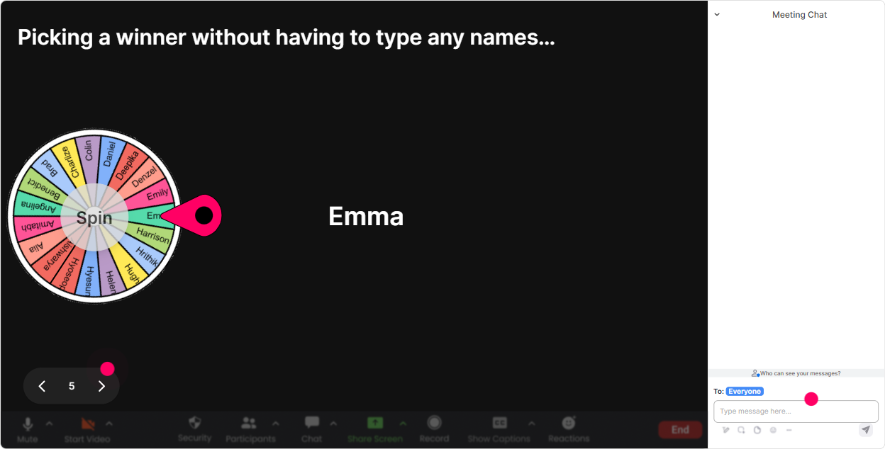 You know that moment when you ask, Who wants to share? and suddenly everyone becomes a statue? Winner Wheel fixes that in a fun, fair way. How to use it in a Remote & Hybrid Workplace Models ILT: - Drop ME in chat if youre open to sharing your current hybrid policy. Ill spin the wheel. - Comment one challenge youre seeing with hybrid work-then Ill spin and ask someone to unmute for a 30-second perspective. - We need a quick role-play: manager + employee. Type role-play if youre willing, and Ill spin for the two people. Trainer move: keep it low-pressure. Tell them exactly what theyll do: Youll just share for 20 seconds-no long speech. Participation goes up fast when people know its safe.