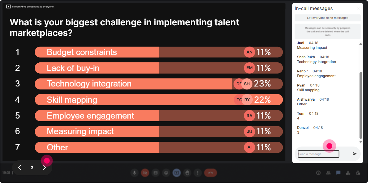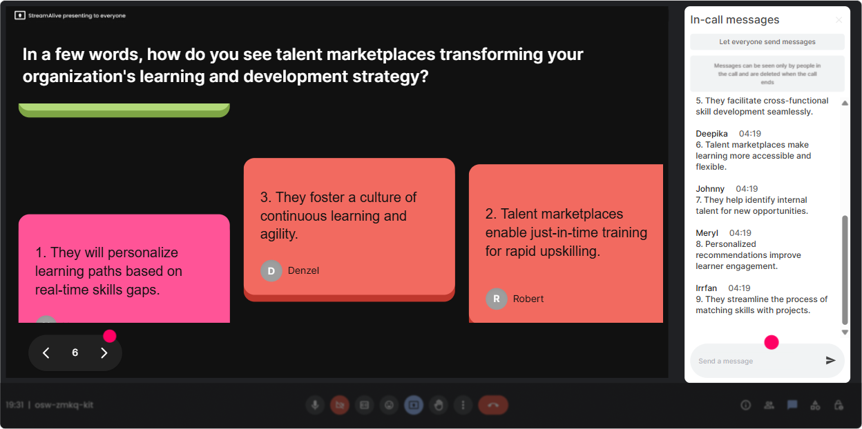 Youve been asked to run an instructor-led session on Talent Marketplaces for L&D Leaders-and you already know the content is solid but you dont want it to feel like a lecture. The trick is simple: keep people doing something every few minutes. Here are practical ways to use StreamAlive to make your Talent Marketplace training feel alive (and get way more voices in the room).