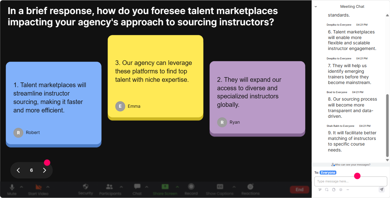 Youve been asked to run a Talent Marketplaces instructor-led training for a Training Agency-and you want people to actually stay with you (not multitask in silence). The easiest way? Build the session around quick, chat-powered moments that pull everyone in. Here are practical ideas using StreamAlive to keep energy high and engagement up to 9x.