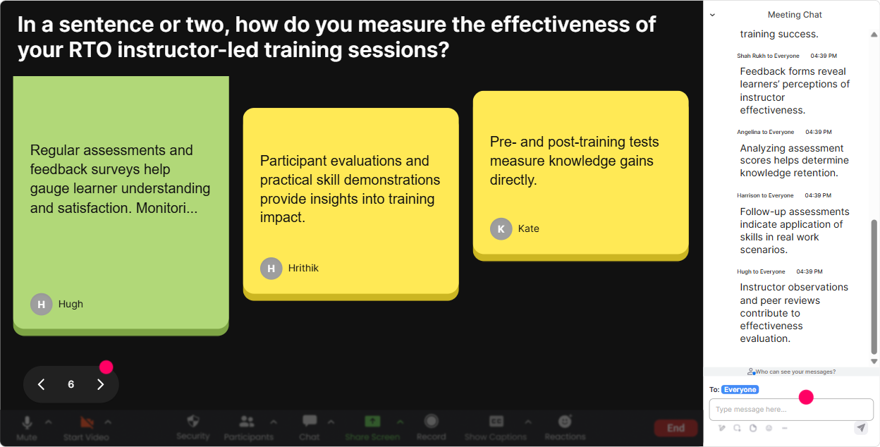 Rating Polls are your read the room button-without awkward silence. Youll instantly know if you can move faster, need to slow down, or need to revisit a concept. Ways to use it in Team-based RTO training: - Confidence check (start): On a scale of 110, how confident are you in running team-based training sessions? - Implementation reality check: How ready is your organisation to roll out team-based delivery next month? (1 = not ready, 10 = totally ready) - After an activity: Rate how clear the roles/responsibilities feel after that example (110). What this unlocks for you as the trainer: - If the average is low, you immediately know to add a worked example, a template, or a mini role-play. - If the average is high, you can move into advanced stuff (edge cases, compliance traps, facilitation techniques).