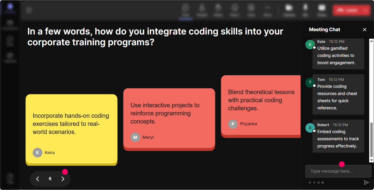 Before you teach anything, find out where everyones starting from-because the room always has a mix: curious beginners, quiet skeptics, and a few who already tried it. Use a Rating Poll to ask: - On a scale of 110, how confident are you that you understand what Vibe Coding actually means? - How comfortable are you using AI tools live during a training session? (1 = not at all, 10 = bring it on) - After a demo: How clear was that workflow? (110) Why it works: it gives you instant, visual feedback in real time (not a survey youll never read). Plus, people love seeing where they land compared to the group. Trainer move: If the average is low, say: Perfect-then were exactly where we need to be. If its high, say: Cool, then were going to level it up.