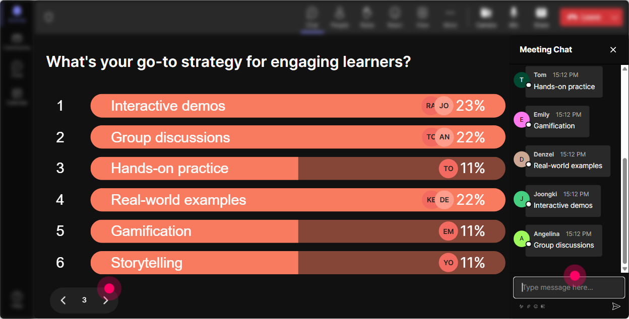 Vibe Coding sessions land best when people feel like theyre steering the ship. Power Polls make that easy. Use a poll to decide: - What do you want to go deeper on today? 1) Prompting frameworks for trainers 2) Turning SME content into activities 3) Building quizzes/knowledge checks fast 4) Designing role-plays + scenarios - Which tool usage style fits you best? 1) I want copy/paste templates 2) I want principles so I can improvise 3) I want a repeatable workflow - For your next training, what will you try first? 1) Icebreaker generation 2) Case study creation 3) Assessment questions 4) Facilitation script Why it works: you stop guessing what people want, and you get buy-in because they literally voted for the direction. Bonus move: Run the same poll again at the end: What are you most excited to try now? and compare the shift.