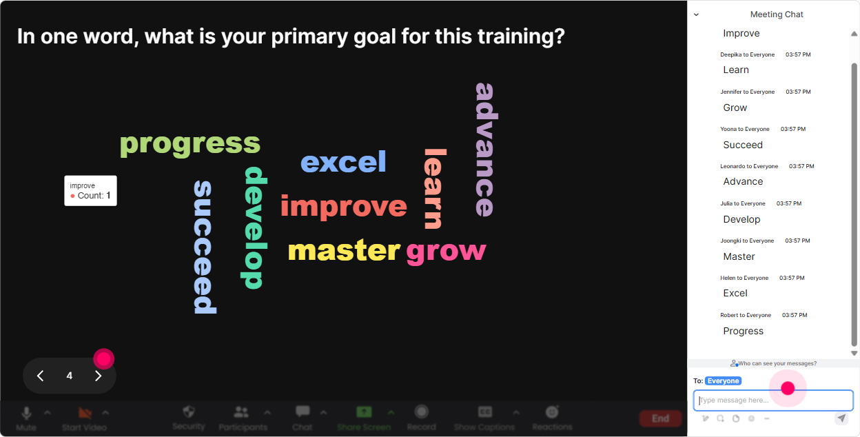 Sometimes you need someone to unmute, share a use case, or answer a question-but asking for volunteers can turn into crickets. Winner Wheel fixes that by making it playful and fair. You can spin from people who participated in a specific interaction (so it rewards engagement), or based on chat activity. Ways to use it in Vibe Coding training: - Pick a prompt reviewer: Im going to spin the wheel-winner reads this prompt out loud and tells me what theyd improve. - Choose a use-case spotlight: Wheel time. Winner shares their agencys most common client request in 15 seconds. - Reward participation: Anyone who answered the word cloud is eligible-winner gets my Vibe Coding prompt cheat sheet. Trainer tip: Make the stakes small but fun (template, checklist, shout-out). The real goal is: more chat activity, more attention, more energy.
