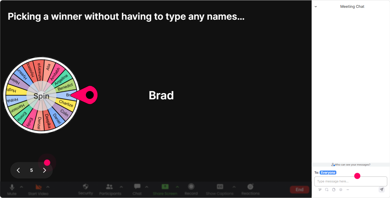 6) Winner Wheel: Get participation without the awkward any volunteers? silence