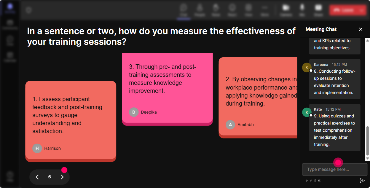 Rating Polls are perfect when you want honest input fast-without putting anyone on the spot. Youll instantly see where the room is at and can adjust your facilitation in real time. Use Rating Polls at key moments like the start, middle, and end: - Start-of-session: On a scale of 110, how strong is workplace community in your organization right now? - After a concept: How confident are you in explaining workplace community to a new manager? (110) - After an activity: How useful was that activity for your own training sessions? (110) Trainer tip: If you see lots of 46 ratings, youve got gold. Say: Cool-this tells me we need practical tools more than theory. Lets go there. People feel like the session is being shaped with them, not just delivered at them.